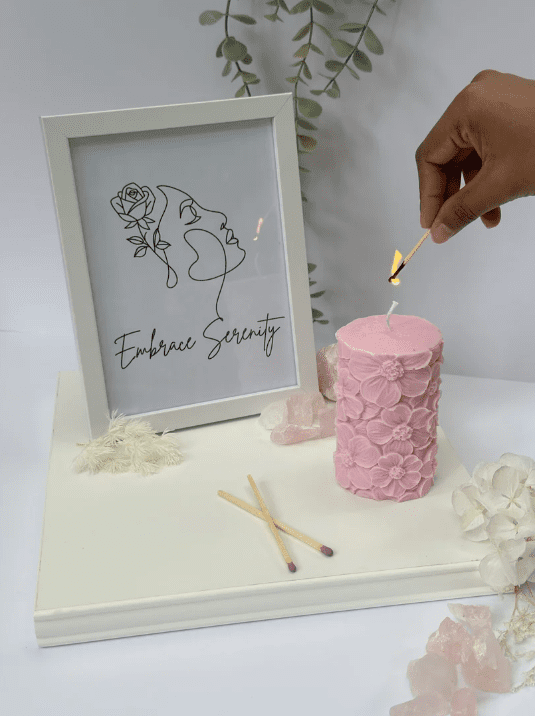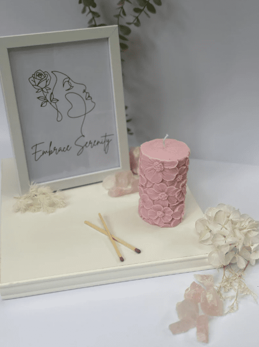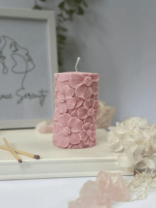 Introducing our Flower Pillar Candle, a delicate masterpiece that blends the beauty of embroidery with the warmth of candlelight. Each candle is meticulously adorned with intricately embroidered flowers, creating a stunning work of art that adds a touch of elegance to any space.