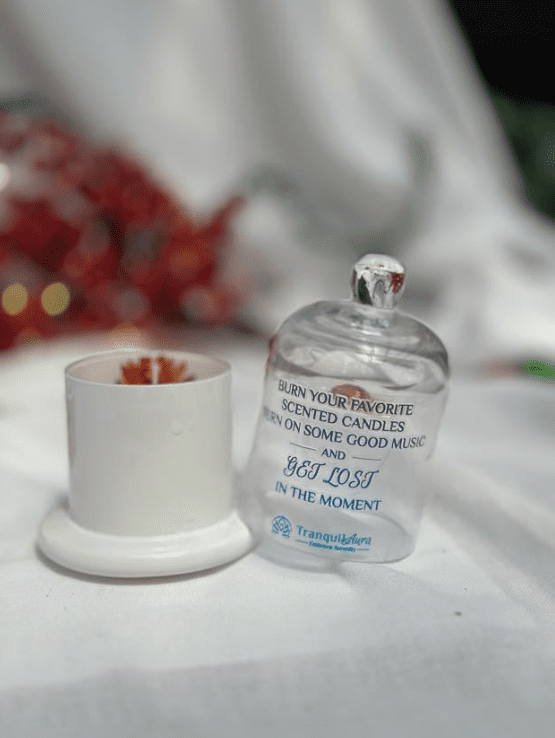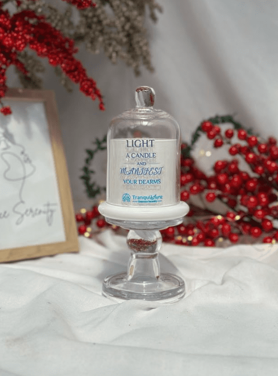 Encased in a clear glass cloche, our candle exudes an air of sophistication, making it a perfect accent for both modern and traditional decor styles. The glass cloche not only adds a touch of elegance but also protects the candle, allowing its fragrance to linger longer and its flame to burn steadily.